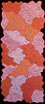 The country associated with this Jukurrpa is Mina Mina, a place far to the west of Yuendumu. The Jukurrpa story tells of the journey of a group of women of all ages who travelled to the east gathering food, collecting ‘ngalyipi’ (snake vine) and performing ceremonies as they travelled. The women began their journey at Mina Mina where ‘karlangu’ (digging sticks) emerged from the ground. Taking these implements the women travelled east creating Janyinki and other sites. Their journey took them far to the east beyond the boundaries of Warlpiri country. The ‘ngalyipi’ vine grows up the trunks and limbs of the ‘kurrkara’ (desert oak) trees. ‘Ngalyipi’ is a sacred vine to Napangardi and Napanangka women that has many uses. It can be used as a ceremonial wrap, as a strap to carry ‘parrajas’ (wooden bowls) that are laden with bush tucker and as a tourniquet for headaches