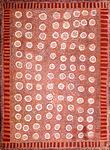 This work shows the artist's personal Tjukurrpa, the Mulpu (native mushroom), as it was handed to her by her mother. The Mulpu grow after the seasonal rains along the creek and river banks. The painting tells how to find them and how to cook them in an earth stove with a lot of sand. Mulpu represent good times out in the desert, and a time for celebration as the landscape comes alive with bush tucker of all sorts. "After the rain comes the bush mushroom sprouting from the ground, we pick them and they are delicious to eat." Anmanari came to have the Mulpu as her personal law because her mother was eating the mulpu on the night that Anmanari was born, causing a quickening of the pregnancy. In her paintings the artist likes as well to depict women digging for the mushrooms with their traditional tools, their coolamons and nulla nullas. |