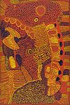 This work depicts a story about Kanpi and the Kalaya (emu) dreaming track. It comes with a certificate from Maruku Arts. |