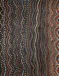 During ceremony on the Tiwi Islands a series of ‘yoi’ (dances), are performed; some are totemic (inherited from the person's Mother) and some serve to act out the narrative of newly composed songs. Participants in these ceremonies are painted with turtiyanginari (the different natural ochre colours) in varying designs, transforming the dancers and, in some cases, providing protection against recognition by mapurtiti (spirits). These designs can be applied in different ways. Ochre is applied to the body and face. These significant artistic designs collectively are called ‘Jilamara’. |