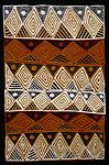 During ceremony on the Tiwi Islands a series of 'yoi' (dances), are performed; some are totemic (inherited from the person's Mother) and some serve to act out the narrative of newly composed songs. Participants in these ceremonies are painted with turtiyanginari (the different natural ochre colours) in varying designs, transforming the dancers and, in some cases, providing protection against recognition by mapurtiti (spirits). These designs can be applied in different ways. Ochre is applied to the body and face. These significant artistic designs collectively are called 'Jilamara'. |